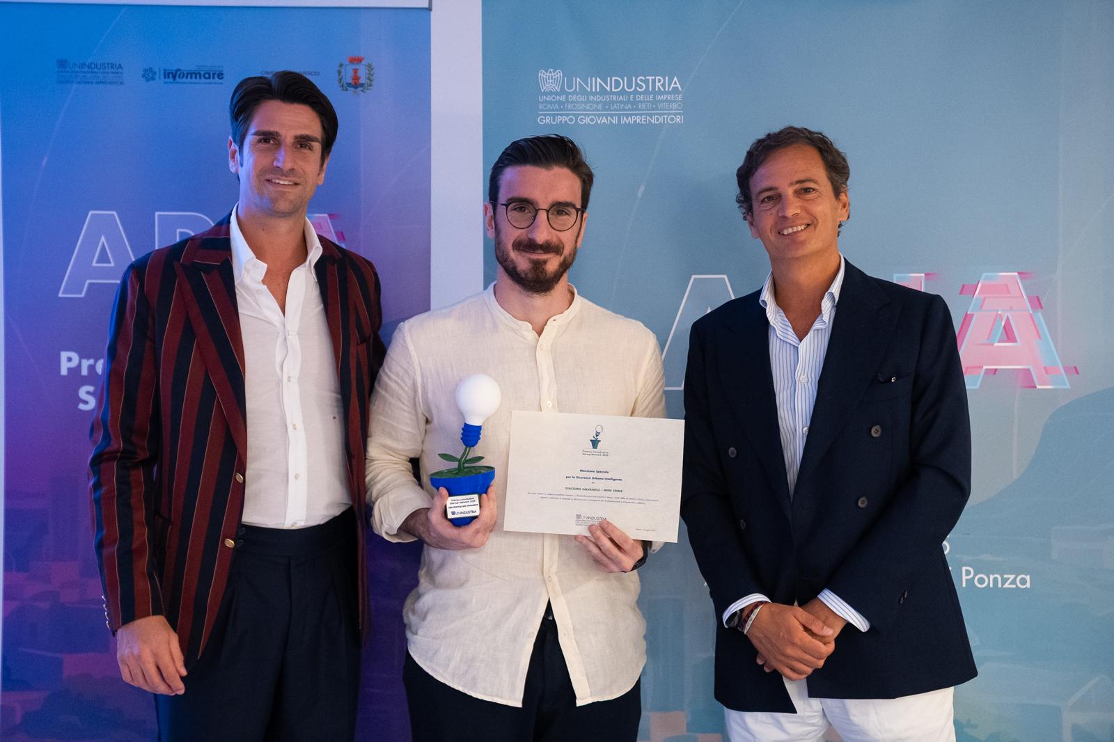 Mine Crime di Giacomo Salvanelli è la vincitrice della prima edizione del “Premio Unindustria Startup Network", riconoscimento assegnato oggi nell'ambito di ARIA e dedicato alla startup più innovativa del Lazio, che si è distinta per l’elevato contenuto tecnologico, l’utilizzo avanzato dell’Intelligenza Artificiale e un modello di business altamente innovativo.