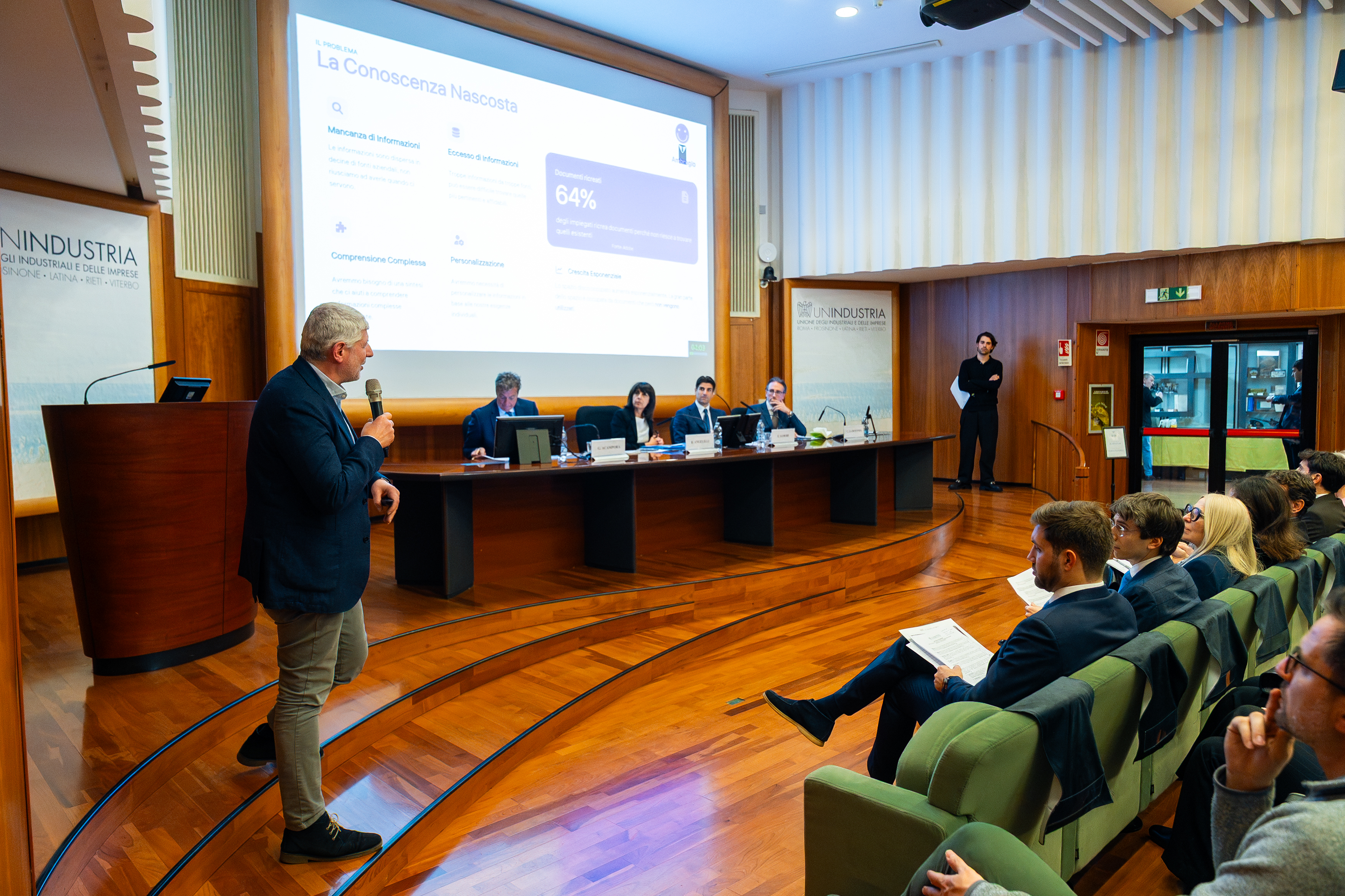 All’evento sono intervenuti oltre a Eugenio Samori Presidente del Gruppo Giovani Imprenditori di Unindustria, anche la Vicepresidente della Regione Lazio Roberta Angelilli, il Presidente della Camera di Commercio di Frosinone Latina Giovanni Acampora e Carlo La Rotonda, Direttore di RetImpresa.